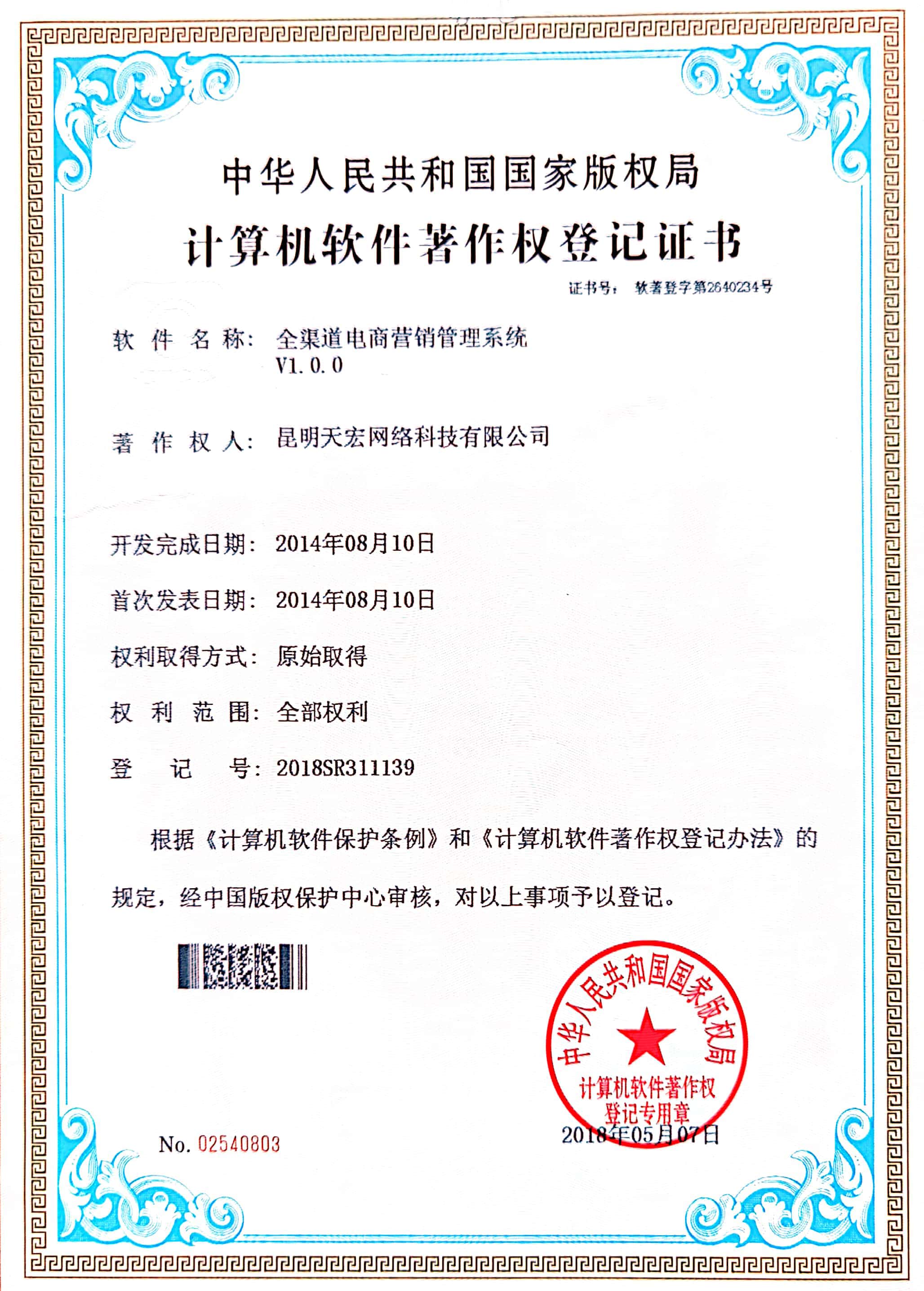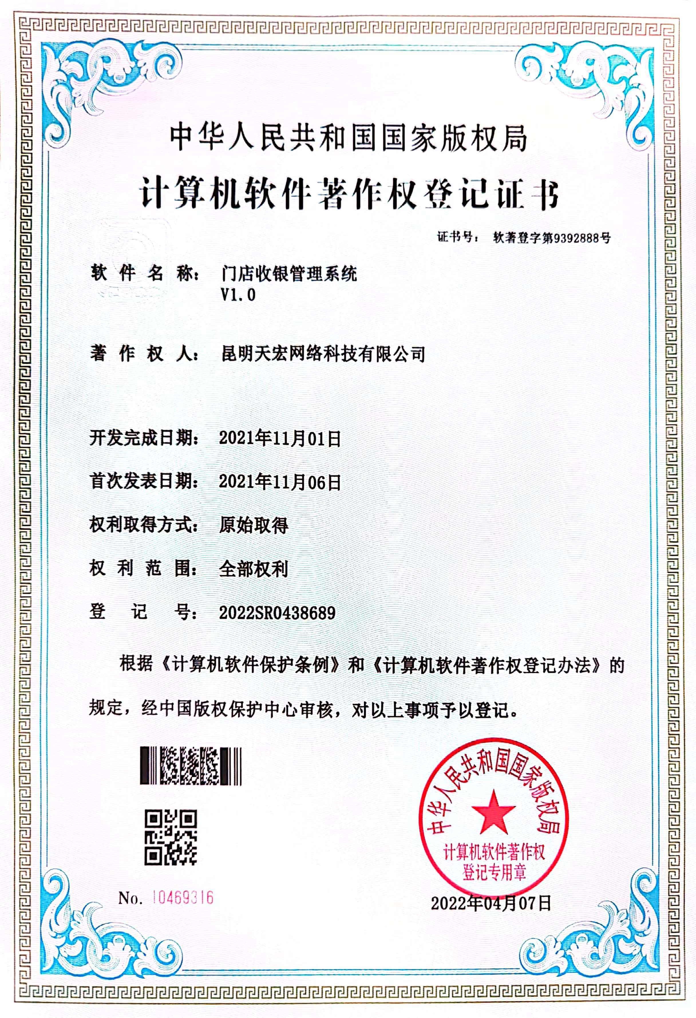 天宏網(wǎng)絡通過不斷的研發(fā)創(chuàng)新,現(xiàn)擁有50多項計算機軟著證書,包括多商家點餐系統(tǒng)、門店收銀管理系統(tǒng)、通用OA協(xié)同辦公管理系統(tǒng)、智慧商圈運營管理平臺、天宏健康智慧+系統(tǒng)、同城O2O管理系統(tǒng)等。